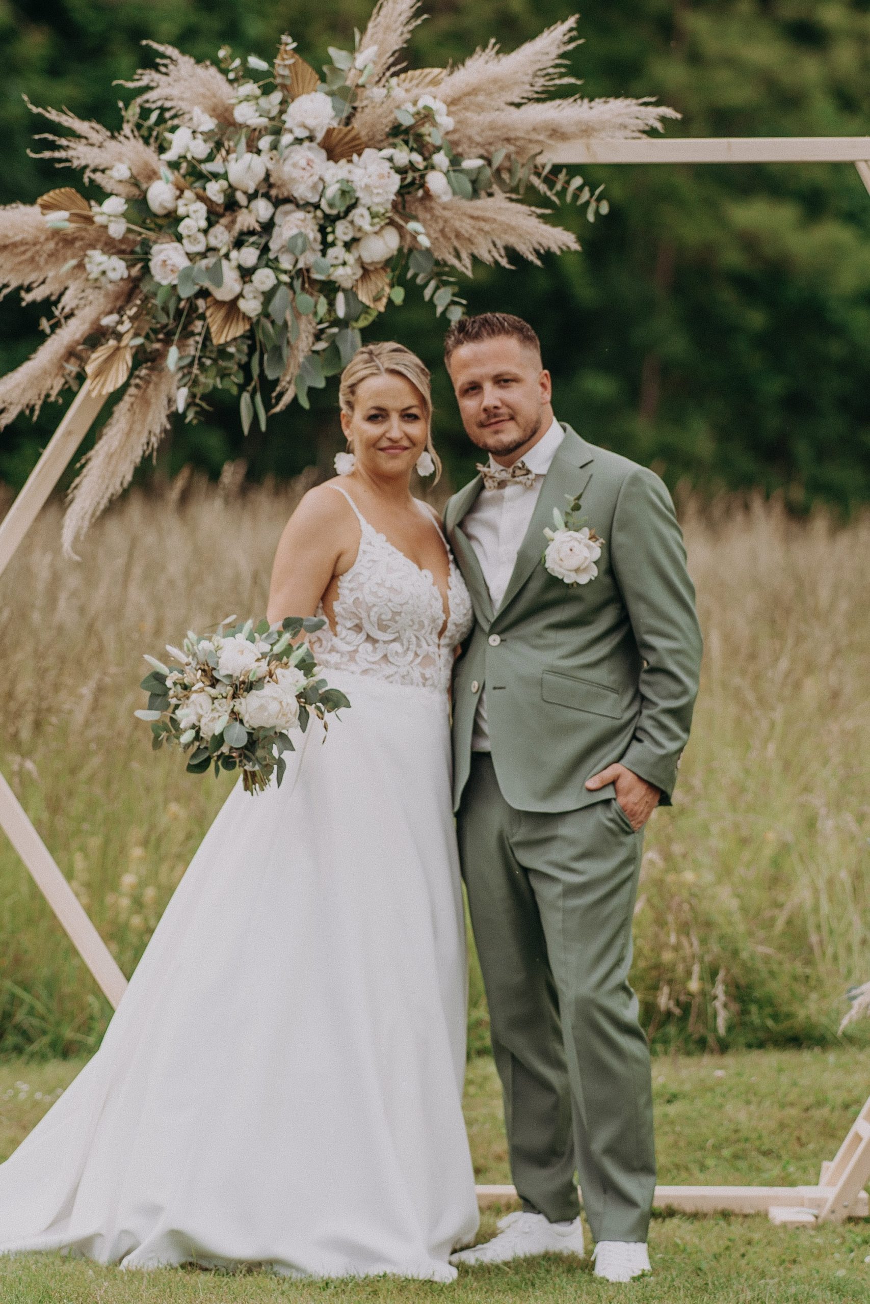 La robe était tout simplement magnifique et parfaite, elle m’allait comme un gant et ma permis de vivre une journée inoubliable. Grâce à elle, nous avons passé un moment magique: j’étais parfaitement accordée au costume de mon mari et au thème que nous avions choisi « champêtre ».