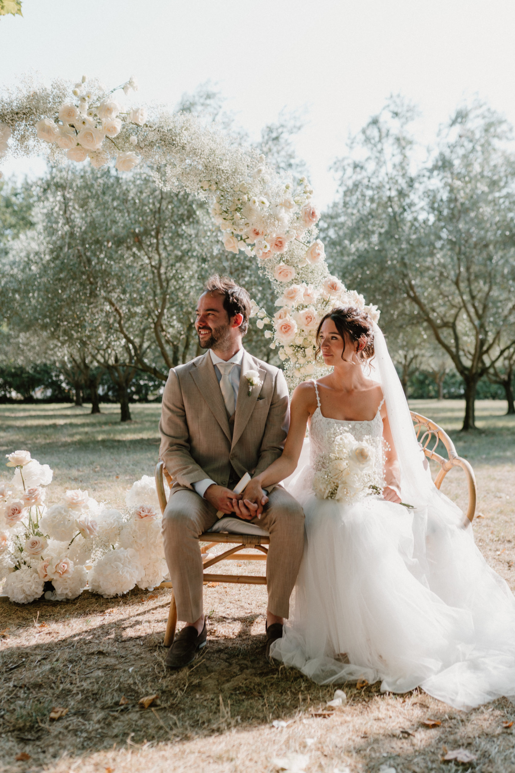 Je ne sais pas comment vous remercier, j’avais un projet ambitieux en tête, et comment dire que vous l’avez réalisé! Vous avez été d’un investissement et d’une disponibilité sans faille, malgré mes demandes pas toujours réalisables! Je n’aurais pas rêvé de meilleur accompagnement tout au long de ce parcours, Vous avez contribué à rendre cette journée merveilleuse et unique. Je me suis sentie plus belle que jamais. Le futur marié en a même pleuré!